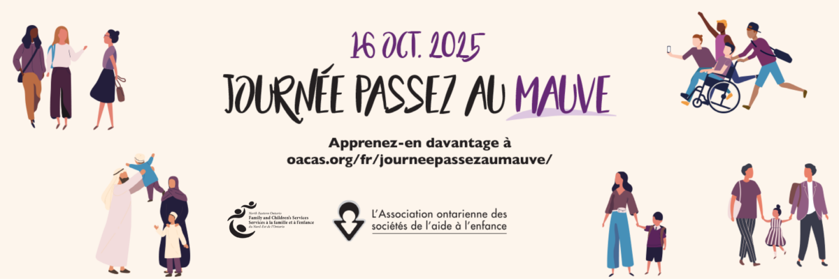 Chaque année en octobre, les sociétés d'aide à l'enfance de l'Ontario accroissent la sensibilisation au rôle important que les personnes et la communauté jouent dans le soutien aux enfants, aux jeunes et aux familles vulnérables par l’entremise de la campagne de la Journée Passez au mauve.